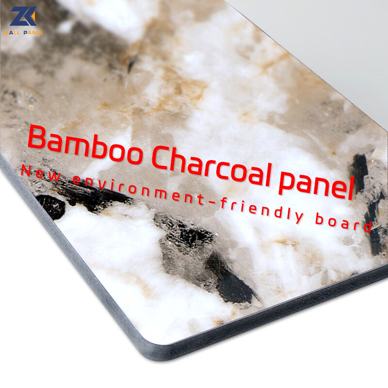 The marble bamboo charcoal board adopts materials with excellent sound insulation function. It can effectively reduce the noise transmission indoors and outdoors, creating a quieter and more comfortable living or working environment. The moisture-resistant properties of the board make it suitable for use in areas prone to moisture or high humidity, such as bathrooms, kitchens or basements. It helps protect the underlying structure and prevent damage from moisture. The plates contain bamboo charcoal which acts as a natural air purifier. Bamboo charcoal has a porous structure that helps absorb and eliminate odors, pollutants, and excess moisture from the air, helping to improve indoor air quality. The marble surface of the panels adds a sense of elegance and luxury to interior spaces. It can enhance the overall aesthetic of a room, providing a premium look similar to real marble. Ideal for interior decoration use.Bamboo is a renewable resource known for its rapid growth, making the use of bamboo charcoal and bamboo-based materials both environmentally friendly and sustainable.Depending on the manufacturing process and materials used, the board may have fire-resistant properties, providing an additional safety feature in the event of a fire. Sound-proof and moisture-proof marble bamboo charcoal panels are versatile and can be used for many purposes, including walls, furniture, partitions and ceilings.
