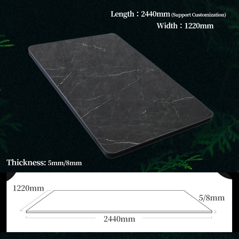 Marble bamboo charcoal wood panels, the appearance of its texture texture and marble is exactly the same, is able to waterproof and moisture resistant wear and scratch resistant and easy to bend the edge of the decorative wood veneer panels. Bamboo charcoal wood marble wall panels are natural bamboo charcoal environmentally friendly panels, can do "no odor", completely eliminating the traditional decoration in the environmentally friendly, formaldehyde-containing drawbacks, bamboo charcoal wall panels due to the addition of bamboo charcoal components and thus have bamboo charcoal environmentally friendly features.This type of wall panel has several key features. Firstly, it is very durable, PET marble fibers are very strong and wear-resistant, able to withstand impacts and are not prone to scratches or dents.In addition, PET Marble Bamboo Charcoal Wall Panel has environmental protection properties, in which the use of bamboo charcoal veneer adds to the environmental friendliness of the wall panel, and also removes indoor odors, such as formaldehyde. The marbled fiber pattern and bamboo charcoal wood veneer give the wall panels a unique aesthetic that can add a touch of style and elegance to furniture, making them perfect for modern light luxury as well as a variety of other styles of decoration.