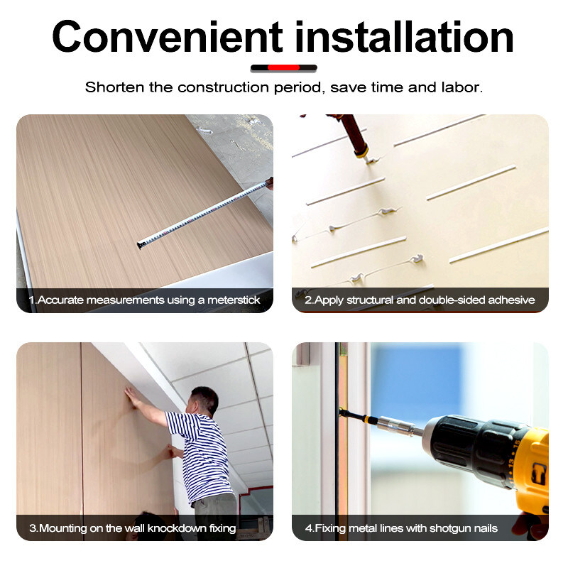 Waterproof Marble Bamboo Charcoal Fibre Board combines the luxurious charm of faux marble with the durability of eco-friendly bamboo charcoal fibre, combining both aesthetics and waterproofing to enhance the beauty of the interior decor. Bamboo charcoal fibre board with exquisite imitation marble design adds a touch of luxury and sophistication to the interior space. The marble pattern creates a charming visual effect and enhances the elegance of the interior decor. Bamboo charcoal fibre panels can be customised with specific sizes, shapes and marble patterns to ensure a perfect fit with the design of the space. Bamboo charcoal fibre panels are designed to be practical, waterproof and moisture resistant. Bamboo charcoal marble wall panels can be used in a variety of environments including homes, offices, hotels, restaurants and shops. They can be installed in living rooms, bedrooms, hallways, backdrops and many other places. Bamboo Charcoal Marble finishes are durable, environmentally friendly, formaldehyde-free and hard-wearing, ensuring they stand up to everyday use and remain beautiful. The planks are made from high quality, environmentally friendly bamboo charcoal fibre which is durable and sustainable. The use of eco-friendly materials is in keeping with contemporary style and adds an environmentally conscious touch to your interior.