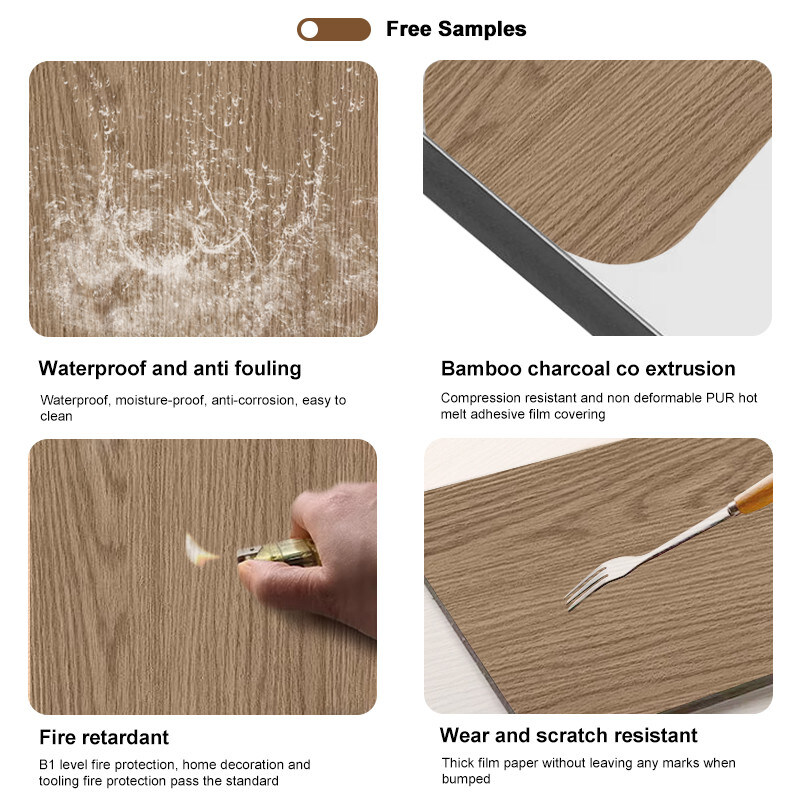 Bamboo wood veneer is made by high-tech technology, it is a unique combination of bamboo wood fiber and recyclable new stable plastic, it is 100% environmentally friendly, waterproof/fireproof, flexible and non-deformable, it is the best choice for interior decoration. Wood veneer Wood veneer is made of natural wood or wood planing process, with natural texture, strong sense of solid wood and three-dimensional sense, obvious level, warm in winter and cool in summer, suitable for human life requirements and decorative needs, the use of wood veneer wall panels can add a sense of naturalness and coziness to indoor space, making people feel very comfortable and natural. Wood veneer wall panels is a kind of wood veneer decorative panels, it can be wear-resistant and scratch-resistant, and the edges are easy to bend, it can be directly installed on the rough wall, the design is simple and convenient, and the maintenance is very easy, saving a lot of installation time. In the test of national testing organizations, the panel has reached the environmental protection E0 level and fire protection B level.